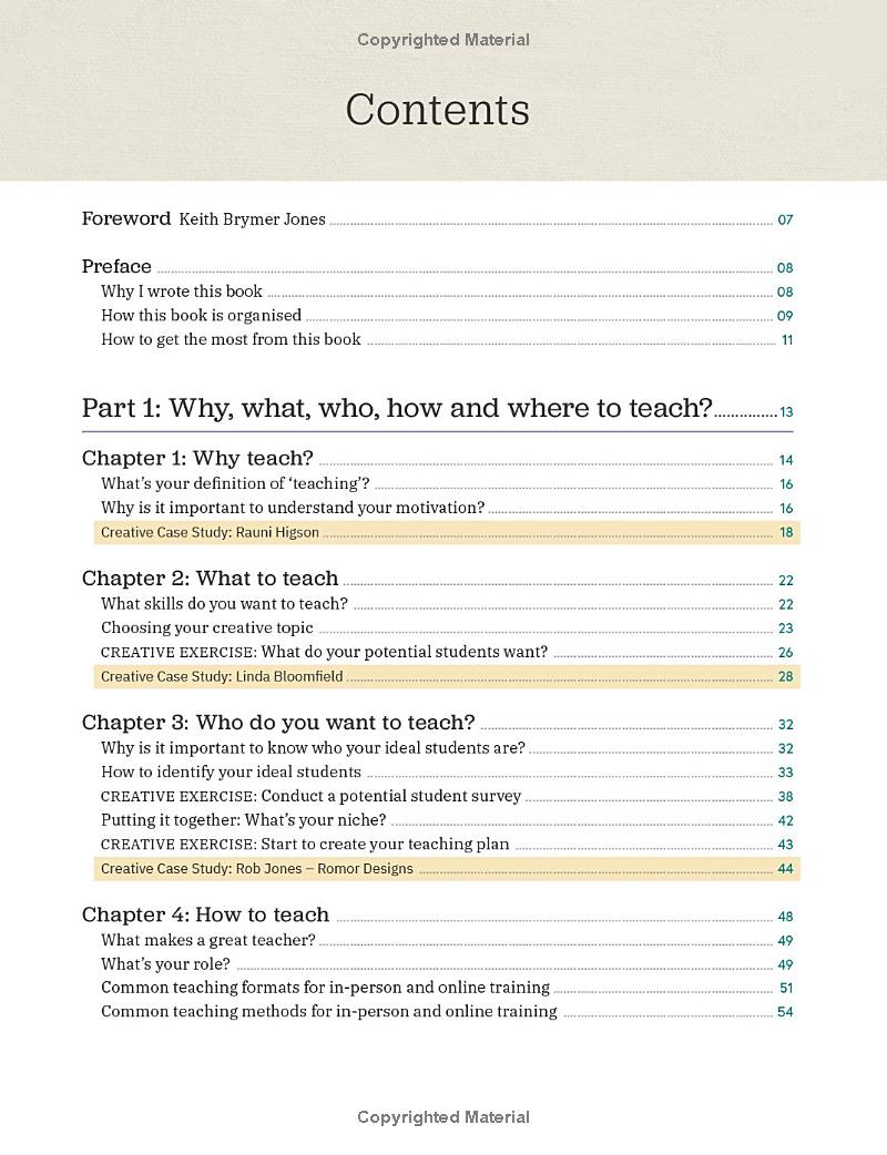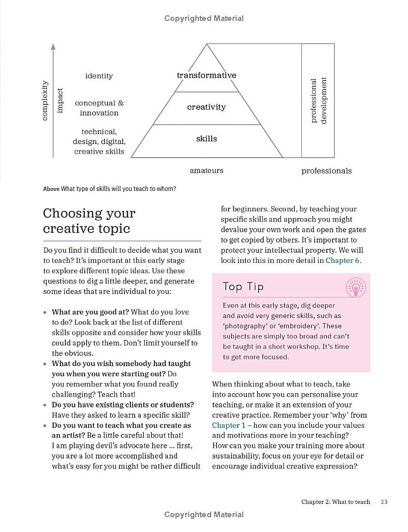 As well as checklists, examples and action points there are case studies, photos and Q&As with a wide variety of artists who successfully teach a variety of subjects such as printmaking, embroidery, ceramics, jewellery-making and hand-weaving. Award-winning creative business adviser, trainer and coach, Patricia van den Akker, teaches you how to become a better and more confident teacher and how to promote and launch your workshops to turn them into a profitable venture, whether delivering them to amateur adults, peers, or specialist groups.