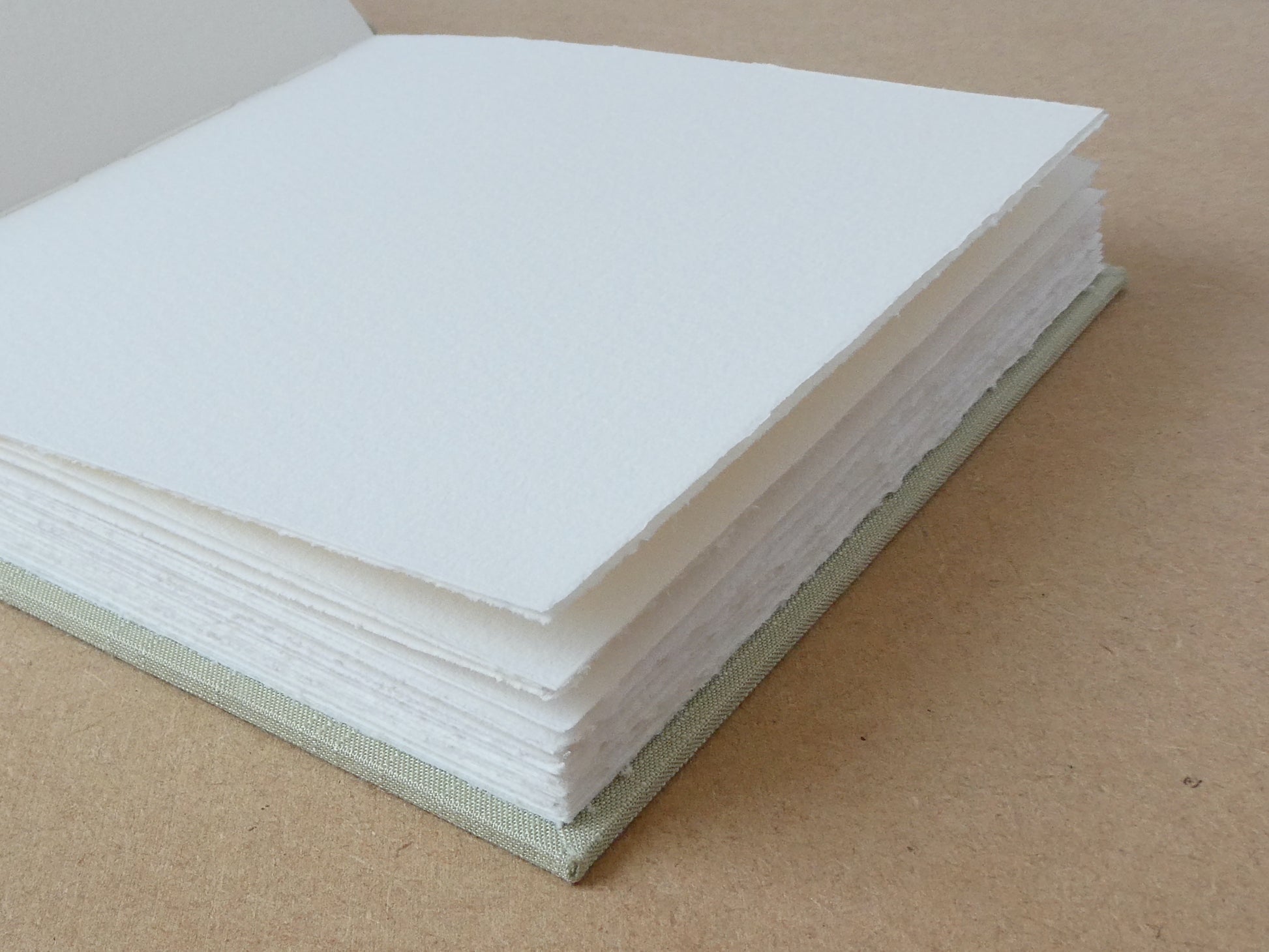 56 pages of 190gsm Saunders Waterford watercolour paper, 100% cotton and acid-free, with deckle edges.
