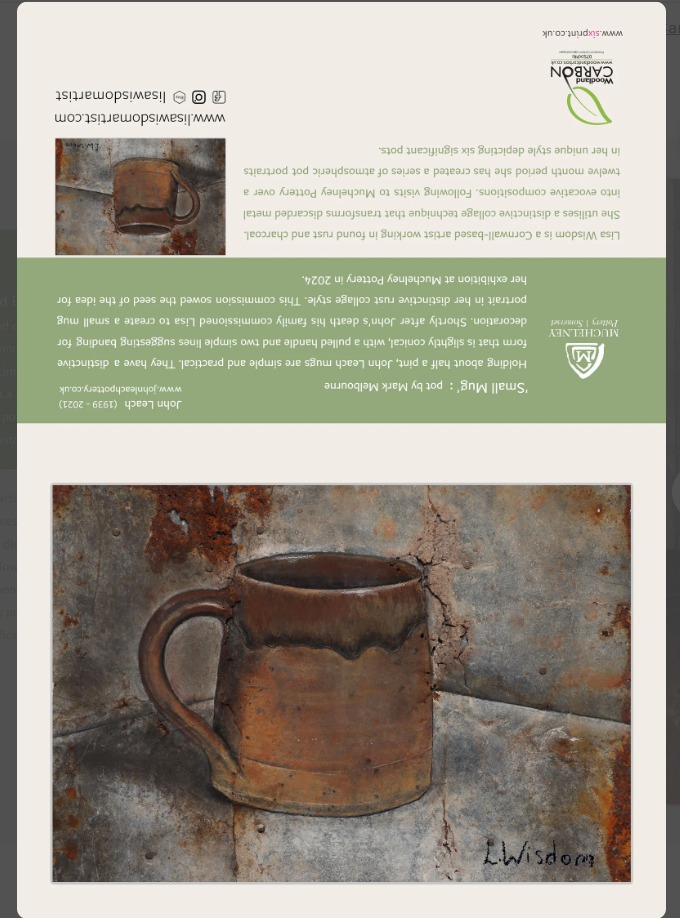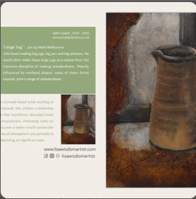 These cards come from a collection of works inspired while on a residency at the Muchelney Pottery, drawn from its surroundings and and John Leach's pots.