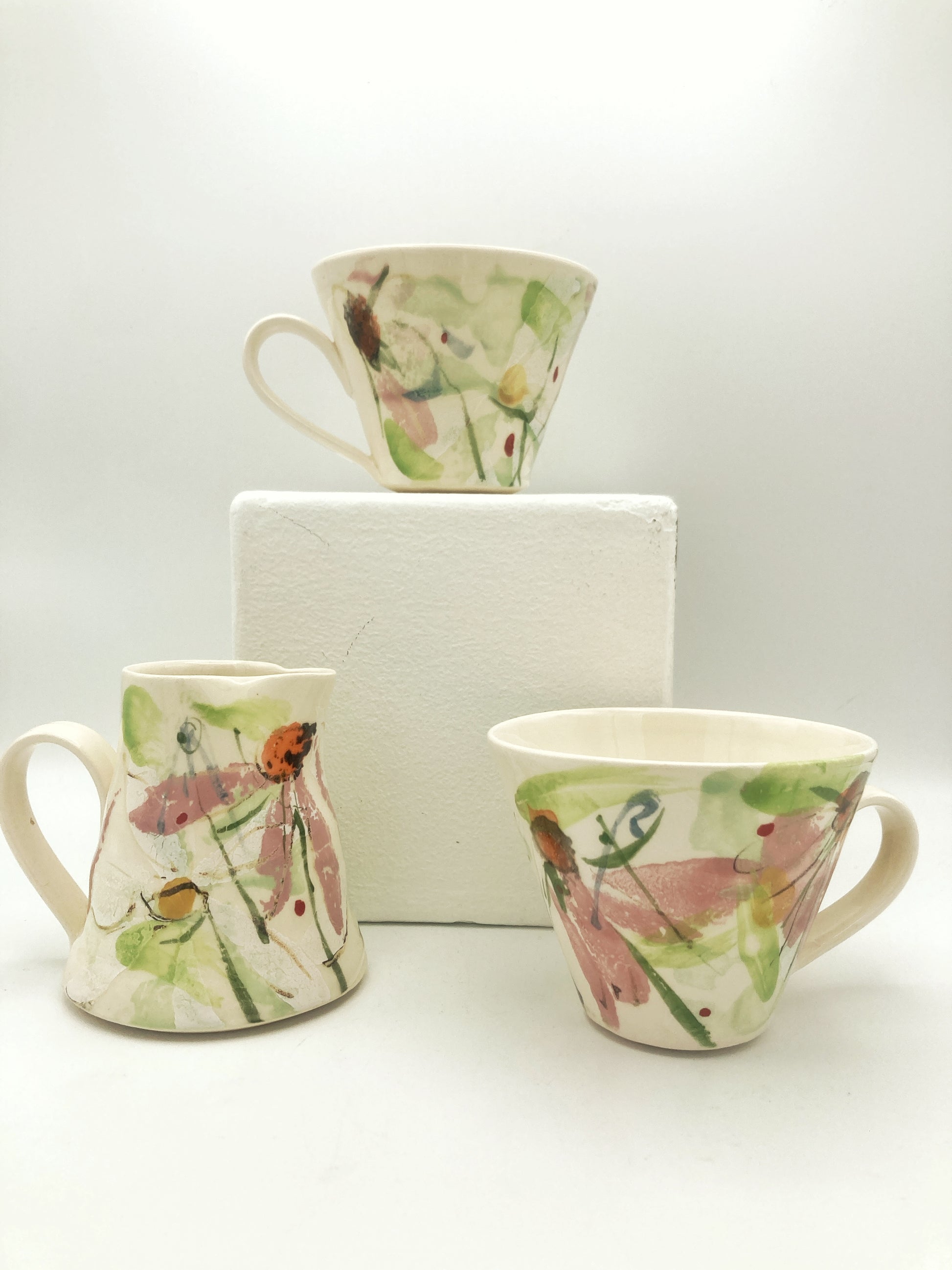 Vicky trained at Dartington Pottery. She is inspired by nature and her own garden. Her work can be seen across the UK.